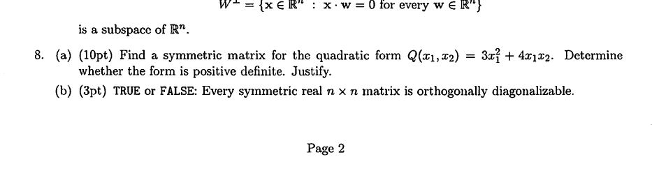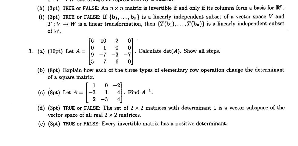 Above Is A Practice Exam For A Linear Algebra Final Chegg Com